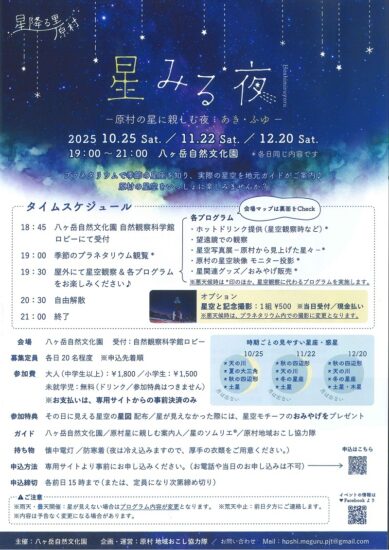 プラネタリウムより星が見える⁉︎ “星降る里”・原村で星空鑑賞「星みる夜:あき・ふゆ」が開催