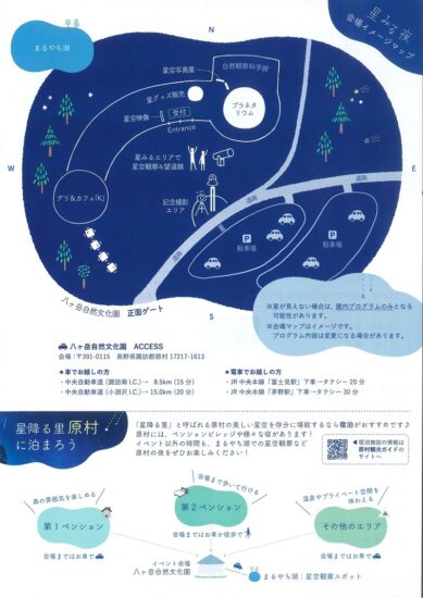 当日のプログラムは、プラネタリウムを鑑賞して季節の星座について学び、そのあと実際に外に出て星空を眺めながら星座を探して夜空を楽しむというもの。屋外での星空観察では、原村の星空をよく知る地元ガイドの方の解説もありますよ。