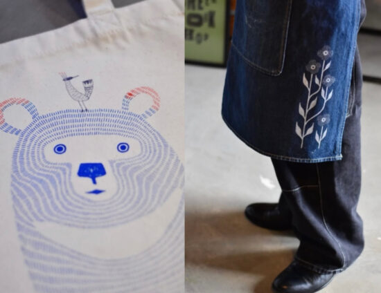また会場では、シルクスクリーンワークショップも開催。約40種類のなかから絵柄を選び、Tシャツもしくはトートバックをつくる体験です。気に入っていたけれど汚れてしまったもの、色褪せてしまった部分へのプリント、自宅にある木箱やカーテンへのプリントなど、刷りたいものの持ち込みも歓迎とのこと。予約は随時受付となっていますので、当日お気軽にご参加ください。