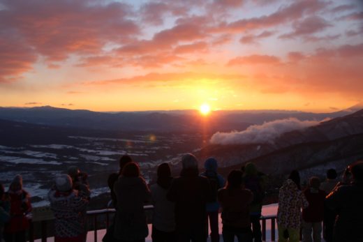長野県内で東京から一番近いスキー場と言われている富士見高原リゾート。リフトで登った先にある創造の森・望郷の丘展望台からは、富士山、南アルプス、北アルプスの日本の高い山トップ3を同時に望むことができます。ここでも、元旦の6時から初日の出リフトが運行。山頂で初日の出を待つことができます。