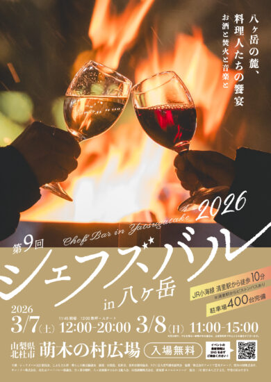 そんな八ヶ岳エリアで、人気レストランを営むシェフたちが一堂に会する冬の饗宴が今年も開催! 3月7日と8日の2日間にわたって行われる「シェフズバル in 八ヶ岳2026」です。