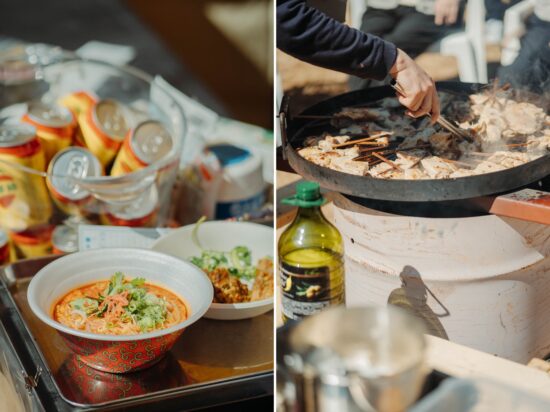 さらに、このイベントでは雄大なロケーションも雰囲気を盛り上げる大きな要素。お昼ごろからスタートし、初日は夜まで続きます。星空の下で暖かい焚火を囲みながら、生演奏で奏でられるジャズやボサノヴァの音楽をBGMに。そんなシチュエーションのなかでいただくお料理とお酒は、普段は味わえない贅沢なひとときです。