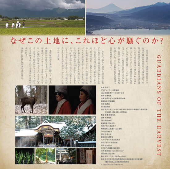 監督を務めるのは、これが初の劇場公開長編作品となる弘理子さん。ネパールやチベットで生と死の文化を追いながら、“自然と祈り”をテーマに作品をつくりつづけてきました。また、プロデューサーは半世紀前から諏訪に関わり数々の映像民俗学作品を手がけてきた北村皆雄さん、音楽は大ヒット映画『国宝』にも参加した音楽家の原摩利彦さん、語りは声優の能登麻美子さんと、いとうせいこうさんが担っています。