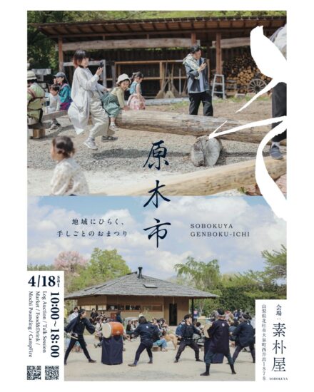 そんな素朴屋が1年に1度だけ感謝祭として行うお祭り「原木市」が今年も開催! 「つくることは、暮らすこと。」というキャッチコピーのもと、家を建てることだけでなく、食べること、語ること、選ぶこと、育てること。それらが私たちの“暮らしをつくる”営みであるという想いから、さまざまな「つくる」と「暮らす」を持ち寄るイベントとなっています。